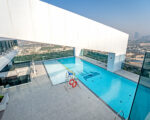 - Lush lawn podium roof with swimming pool and play area for kids